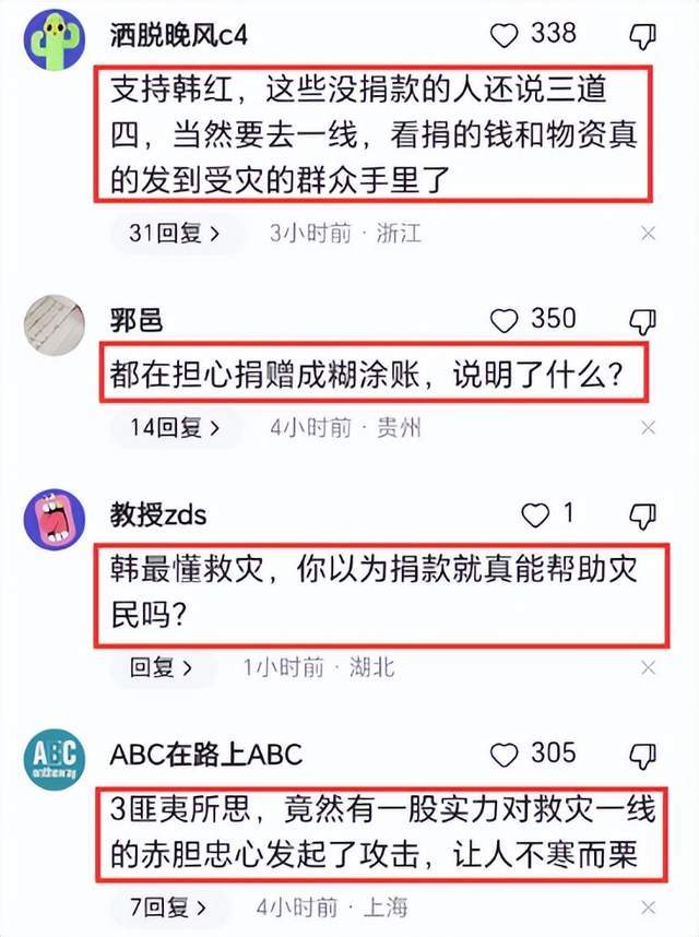 翻看批驳区,发现大部分的网友如故很缄默的,也讲明韩红为何每一次齐要奔赴灾地现场,而不是径直捐钱捐物。