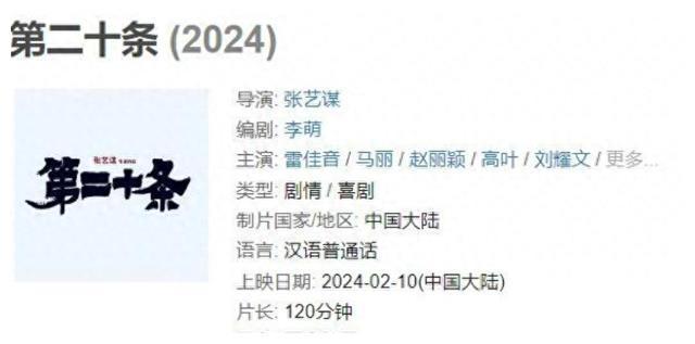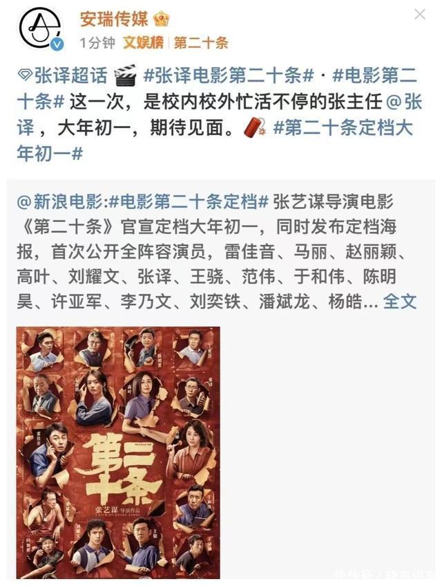 跟着春节档电影纷繁官宣定档,张艺谋也随之抛出了重磅炸弹——《第二十条》。